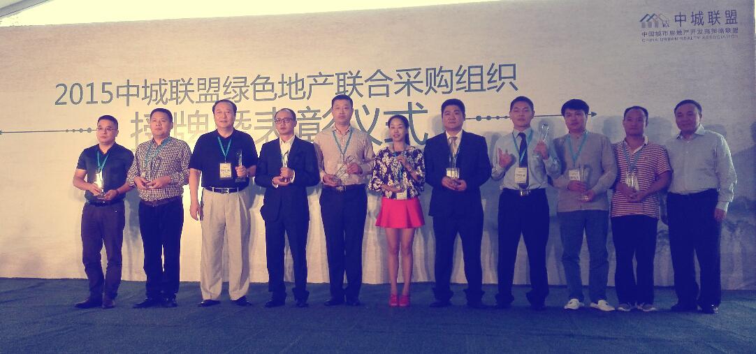 2015中城聯(lián)盟綠色地產(chǎn)聯(lián)合采購供組織授牌暨表彰儀式在浙江德清舉行,狄耐克常務(wù)副總侯宏強(qiáng)受邀參加表彰儀式。