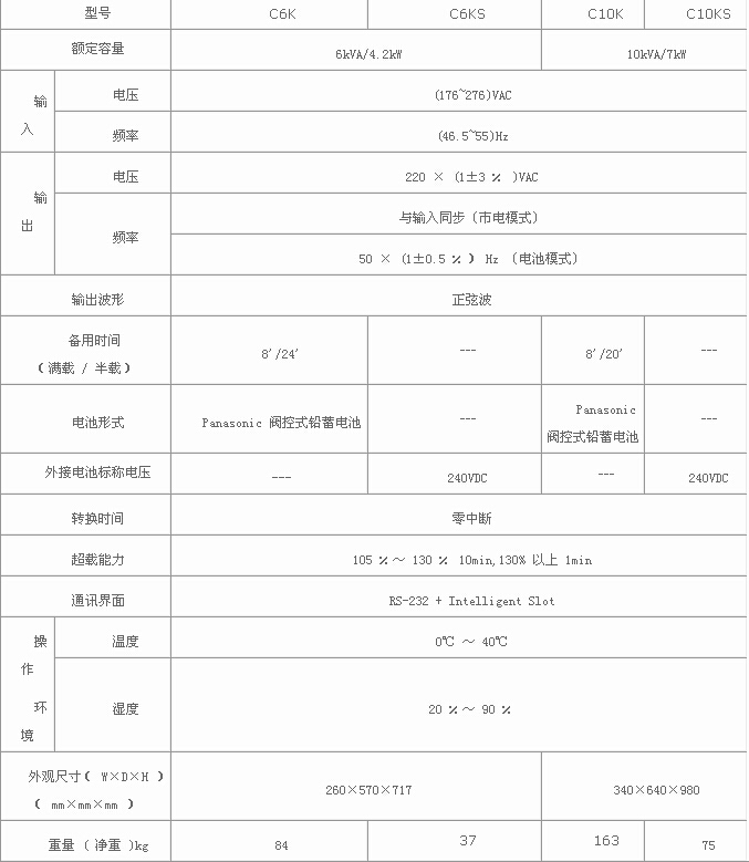 | 見(jiàn)詳情 | 點(diǎn)擊咨詢 | 山特城堡(Castle)系列在線式 UPS ,包括容量 1KVA 至 20KVA 的一系列的 UPS 產(chǎn)品,與在線互動(dòng)式或后備式 UPS 相比,在線式 UPS 能夠?yàn)樨?fù)載提供更佳的電源環(huán)境,無(wú)論從穩(wěn)壓輸出范圍、頻率范圍、輸 |